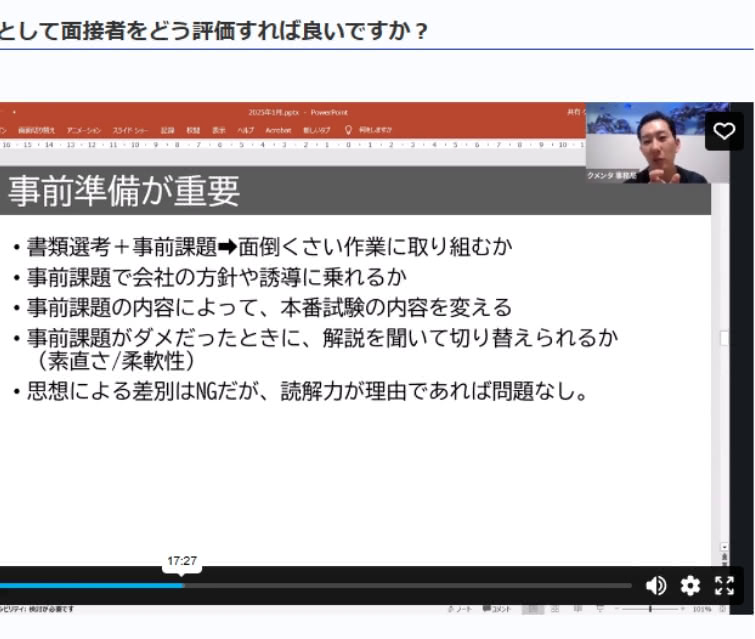 - 月に1回のライブ配信で、講座を学ぶ中で生じた疑問をその場で質問し解消できます。必要に応じて2〜30ページに及ぶスライドを用意し、徹底的に解説。さらに、他の受講生の悩みや質問から新たな気づきや解決策を得ることも可能です。実践でつまずいた部分も丁寧にフォローします。